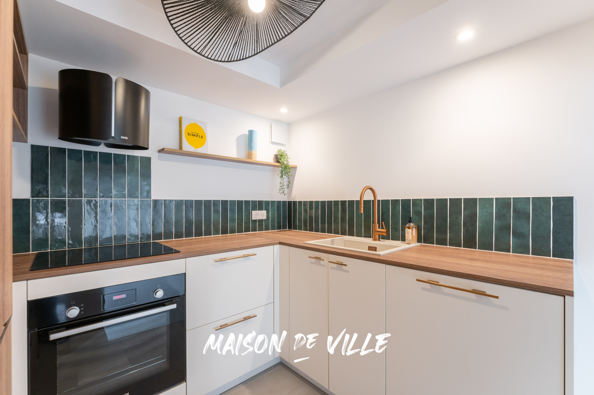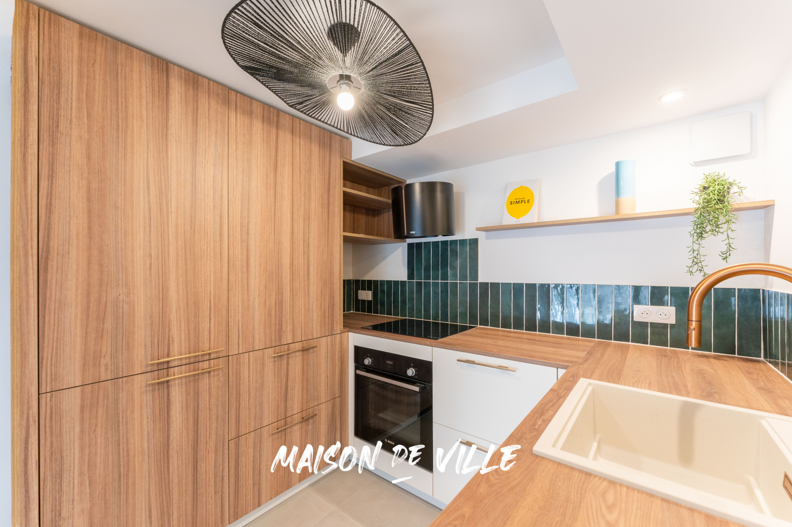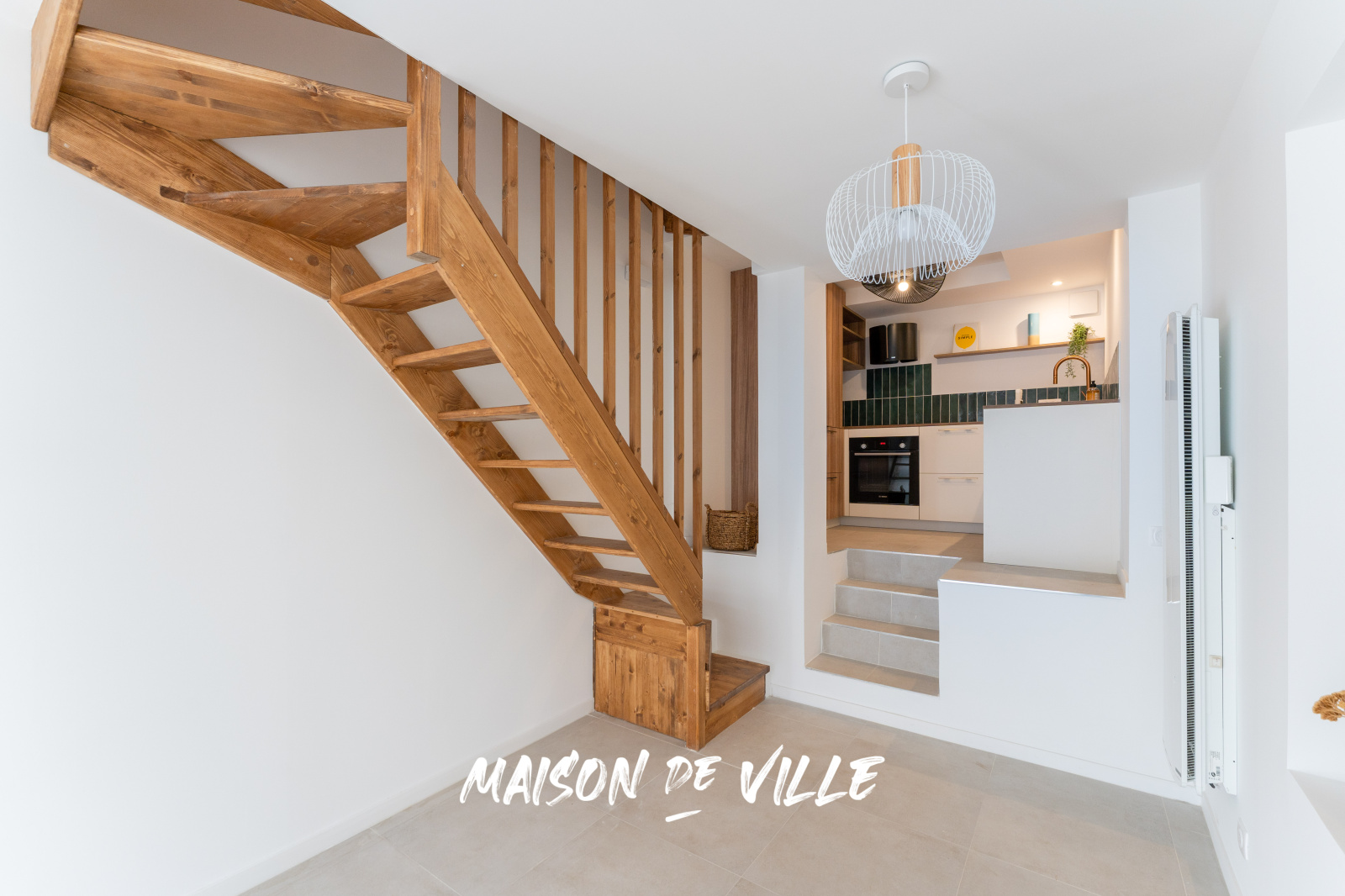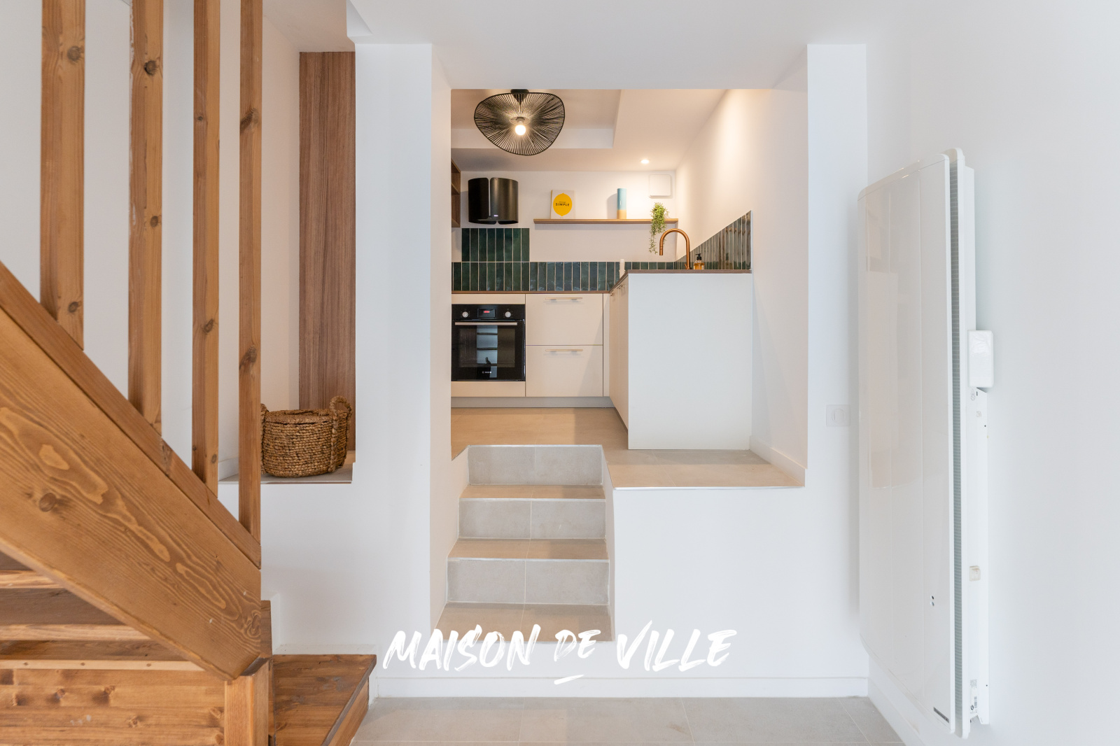 65 m², Cuisine aménagée ouverte sur le salon, 2 belles chambres, salle de bain... La maison a été entièrement pensée et rénovée par architecte.