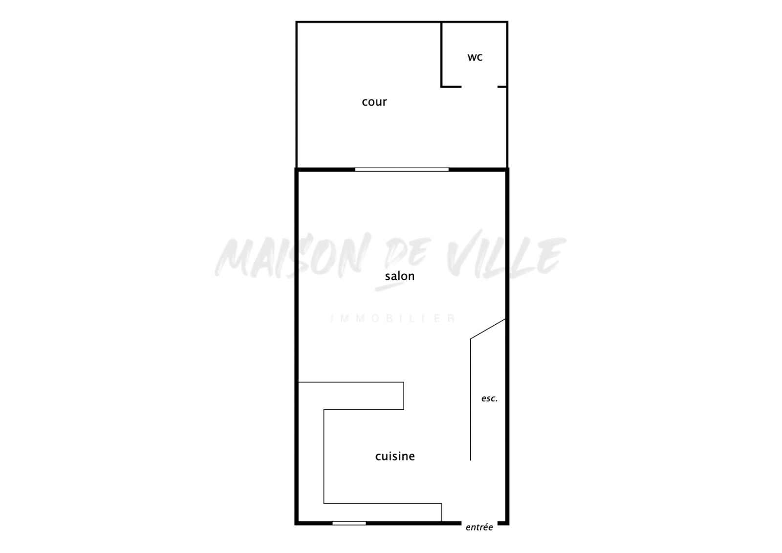 Au rez-de chaussée, l'espace salon-cuisine d'une surface d'environ 36m² s'ouvre sur une cour de 17m² à l'abri des regards.