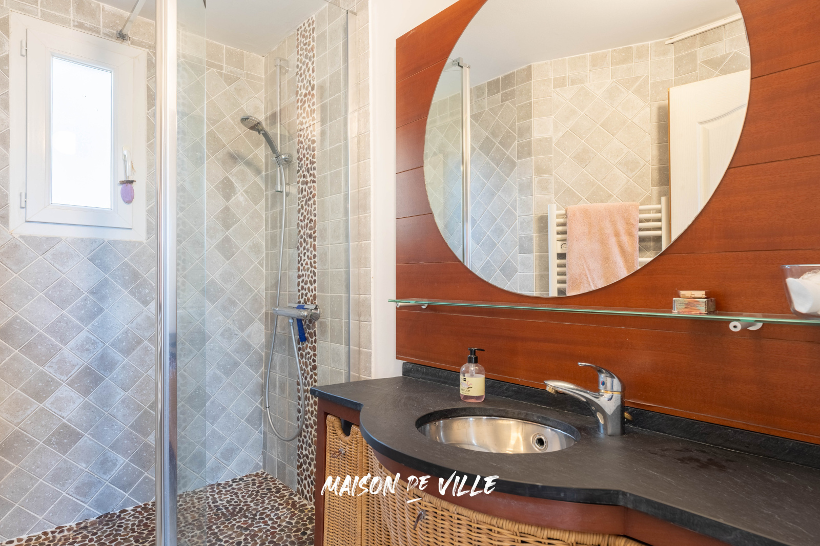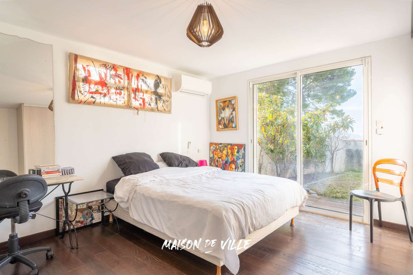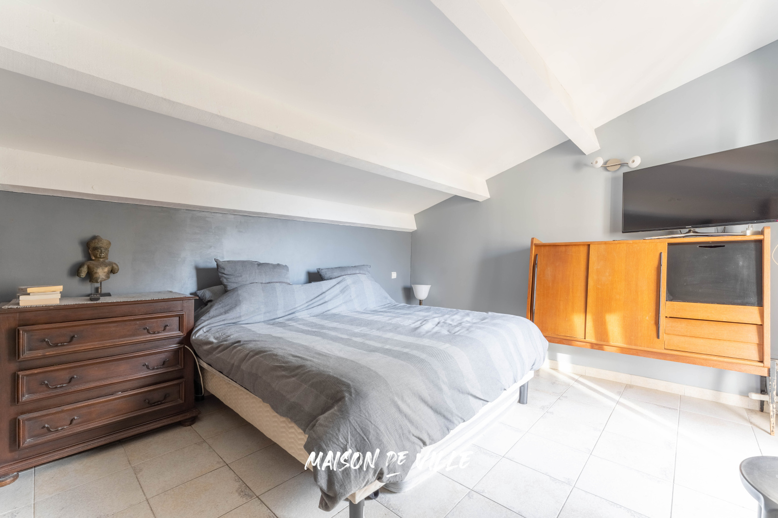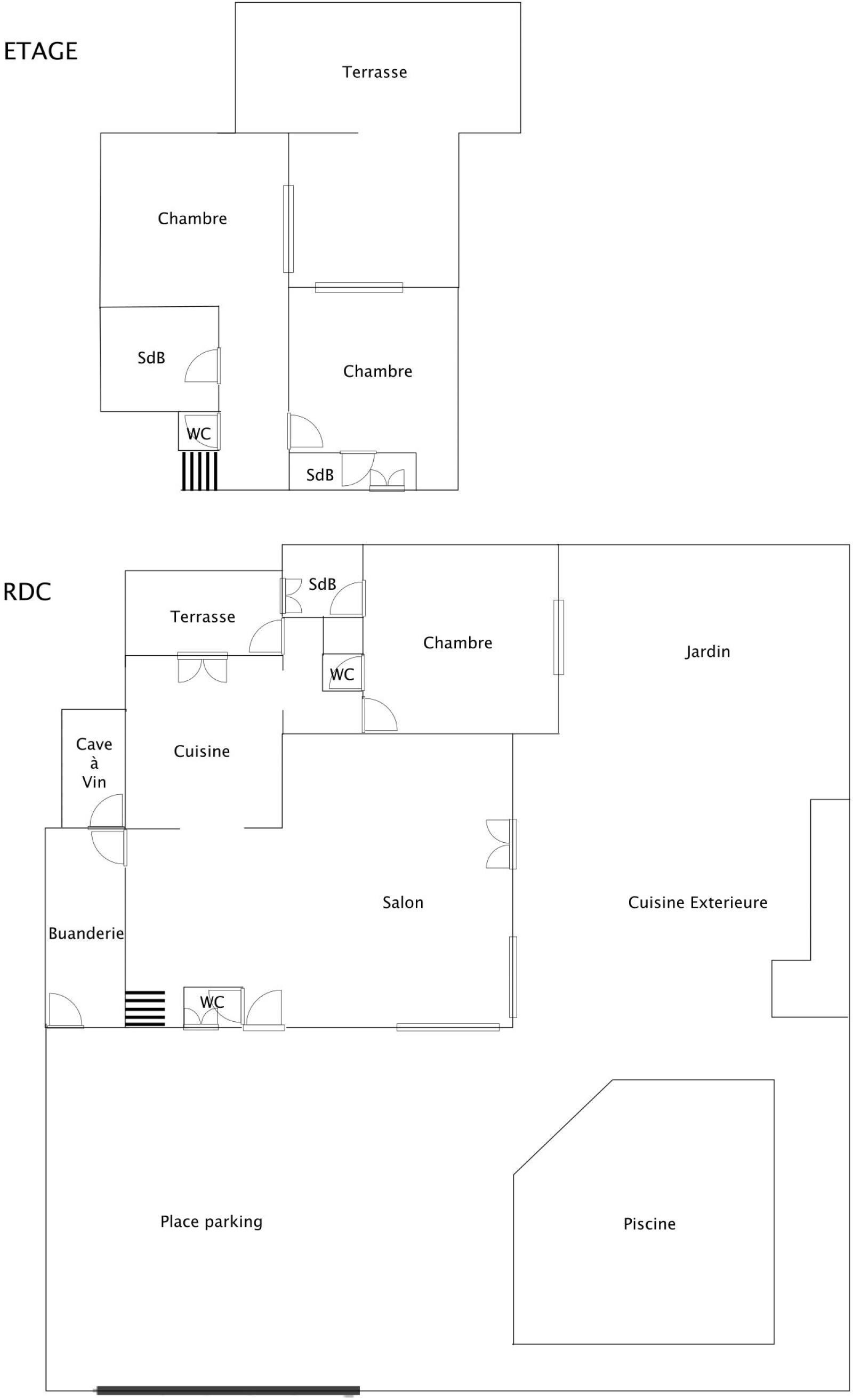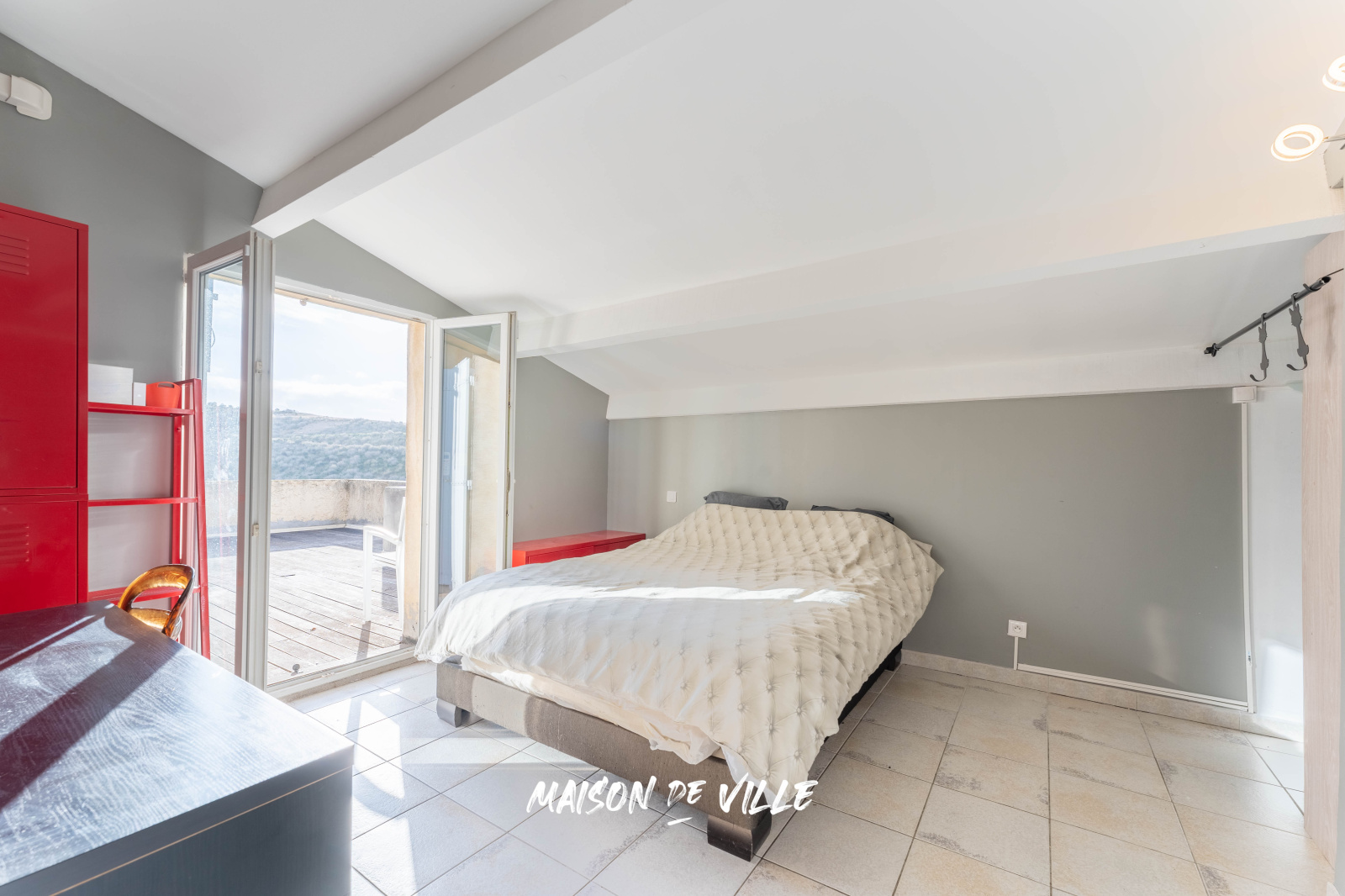 A l'étage vous trouverez deux grandes chambres, une salle d'eau, une salle de bain avec wc séparé ainsi qu'une terrasse de 33m².