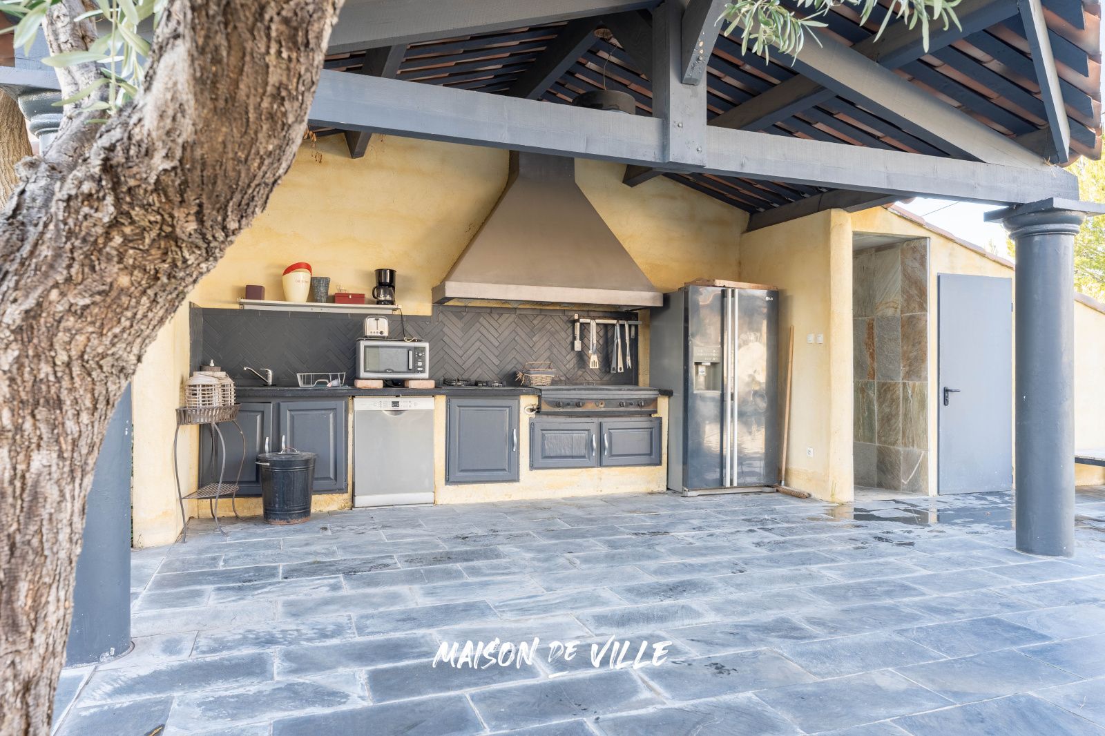 Sa cuisine d'été attenante au jardin saura vous accompagner lors de vos grandes tablées.