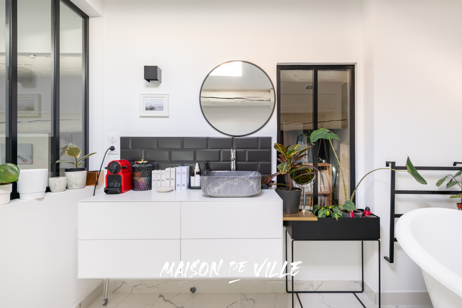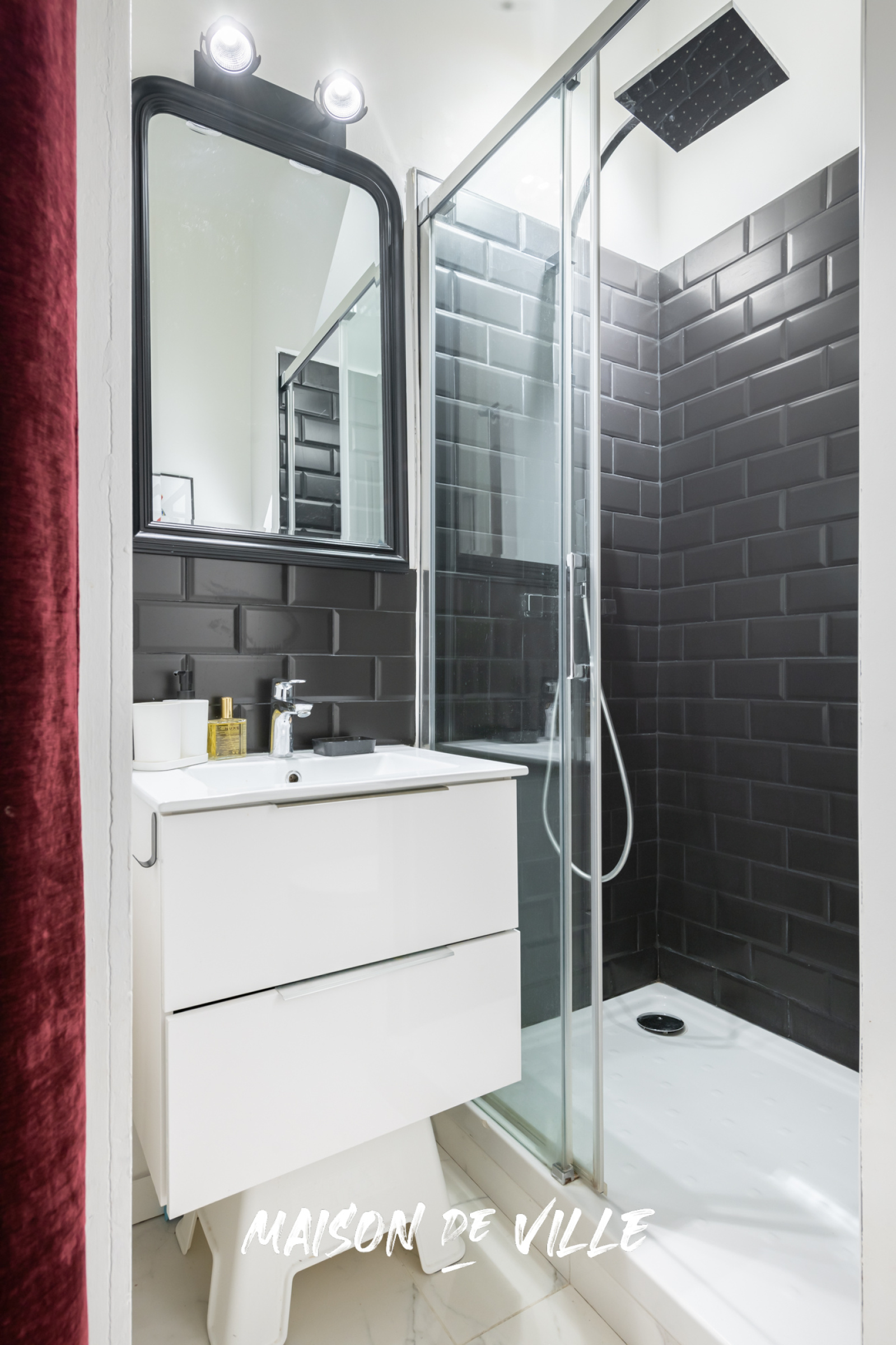 SECONDO on emprunte l’escalier fait sur mesure pour découvrir la suite parentale avec un espace bureau/dressing avec sa salle de bain qui claque MAGNIFICO !!!
