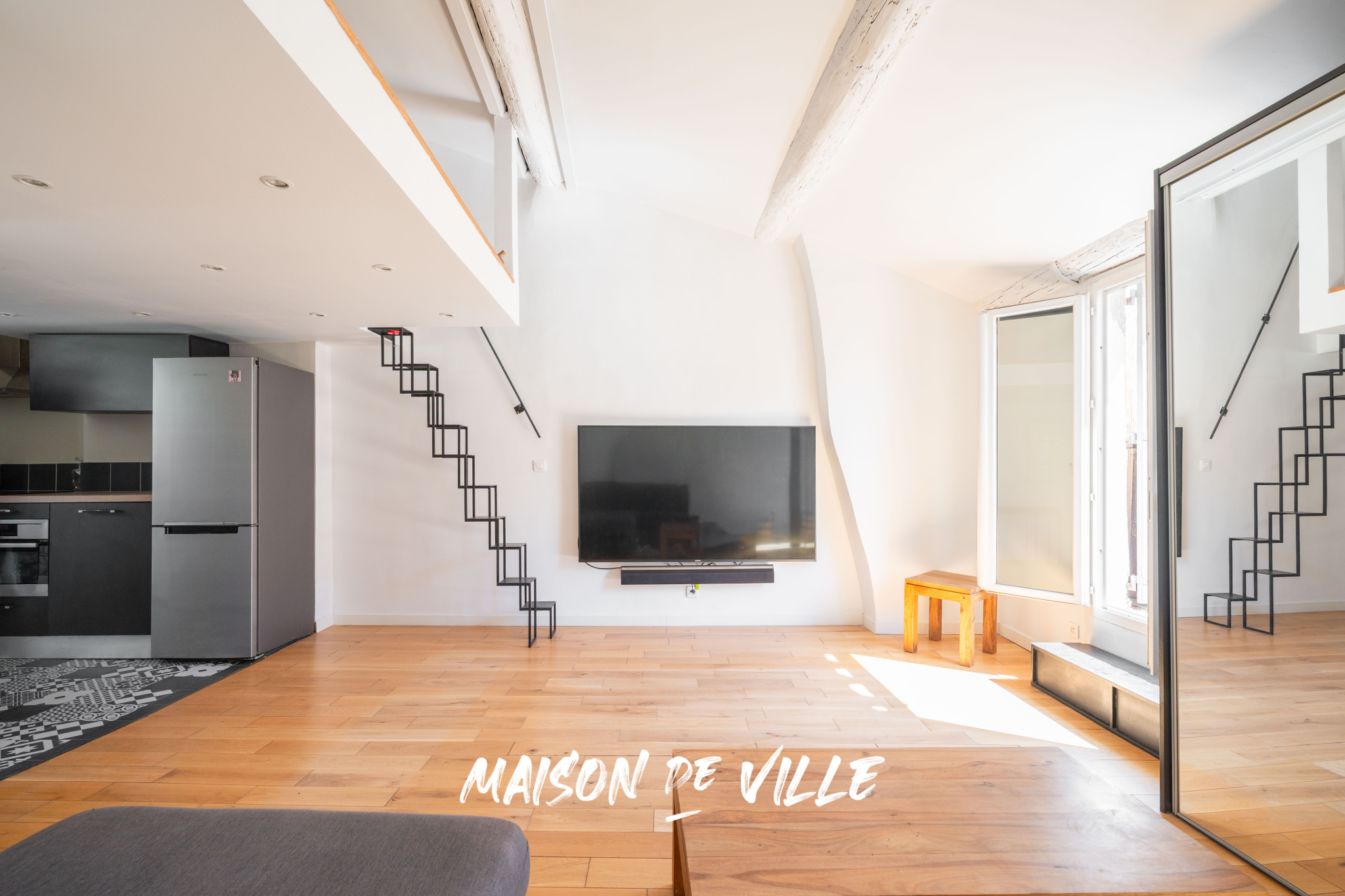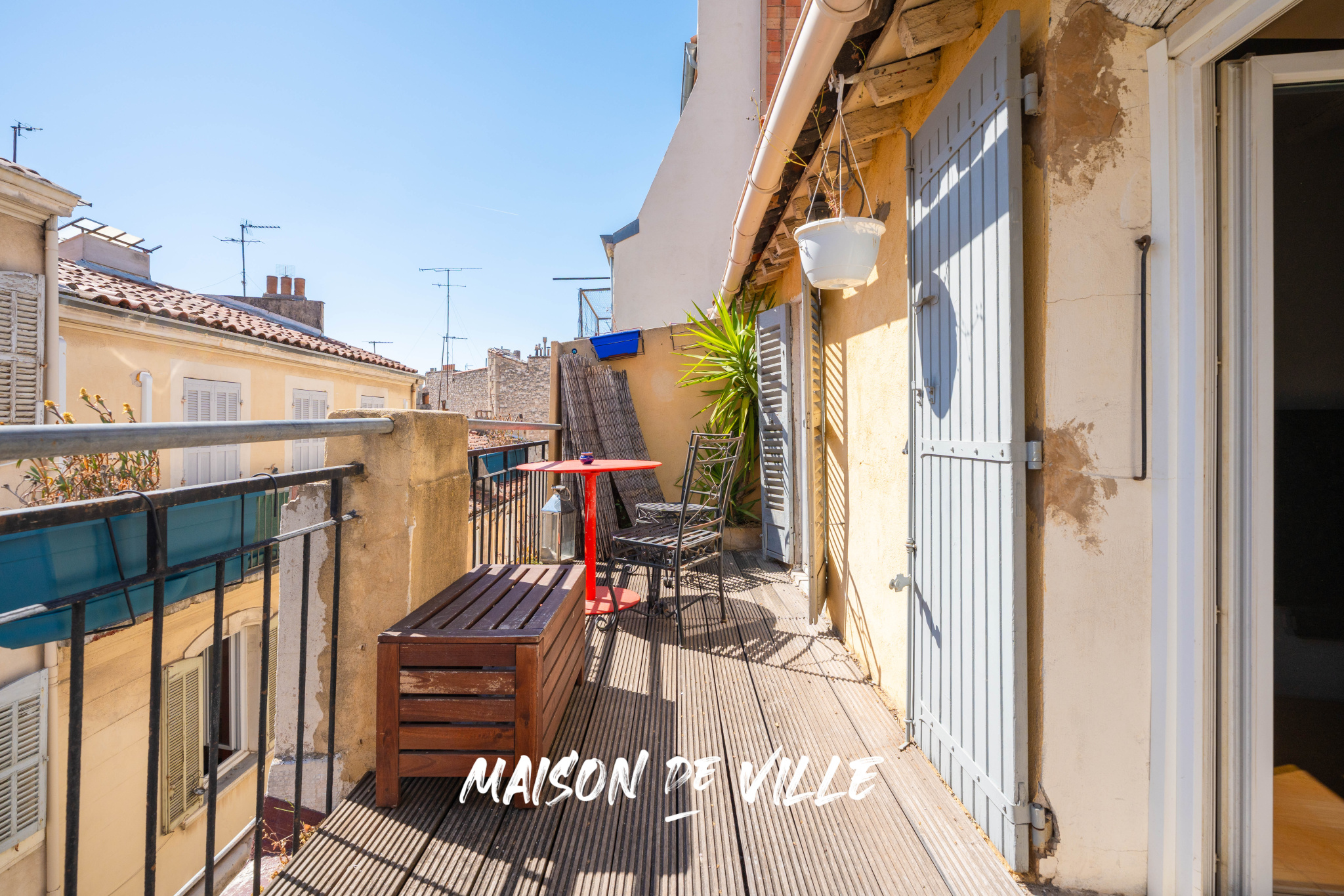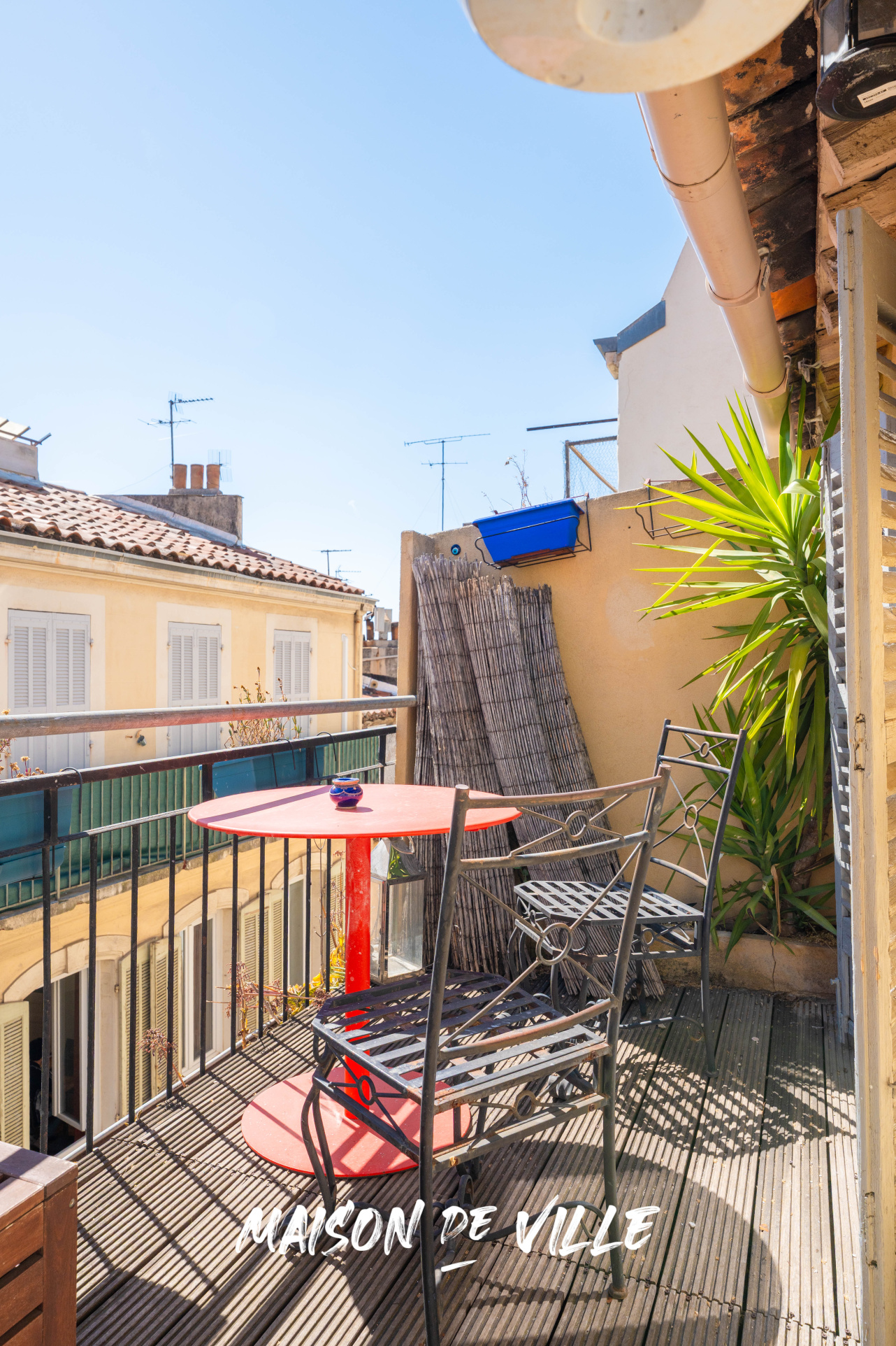 Au 4ème et dernier étage d’un immeuble marseillais ce duplex de 43,6 m² au sol (32 m² Carrez) offre un cadre de vie rare en plein centre-ville.