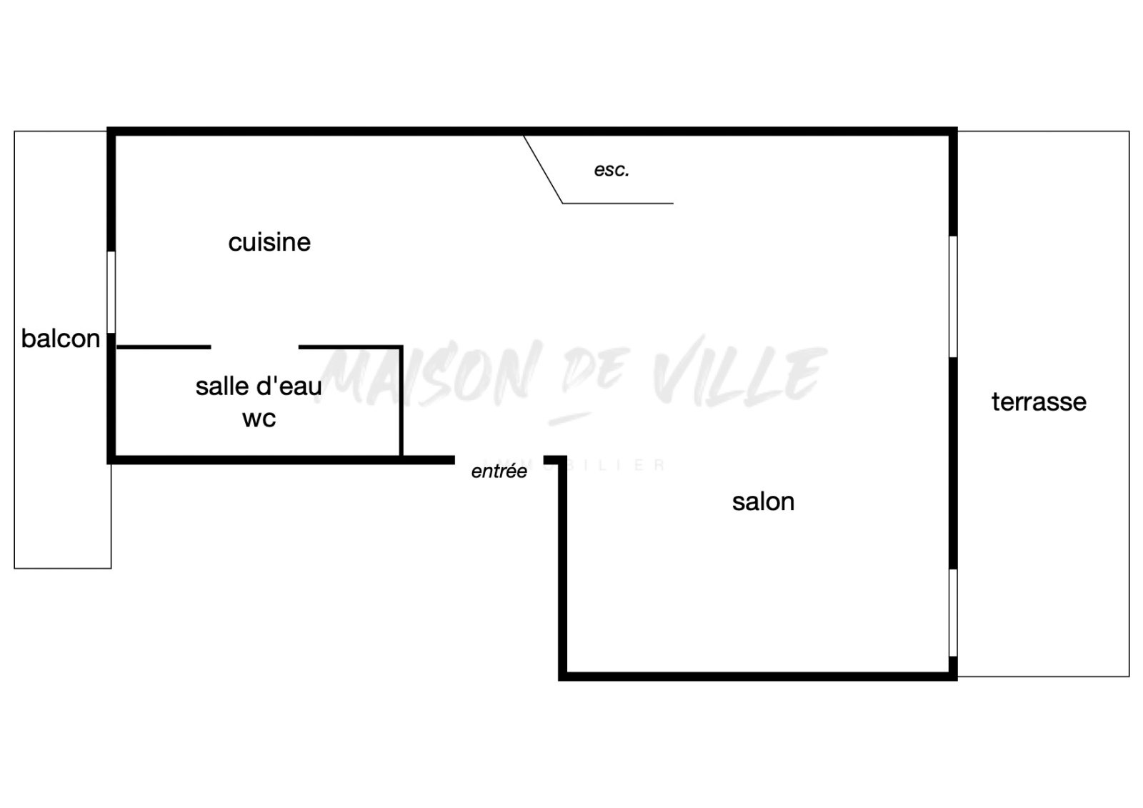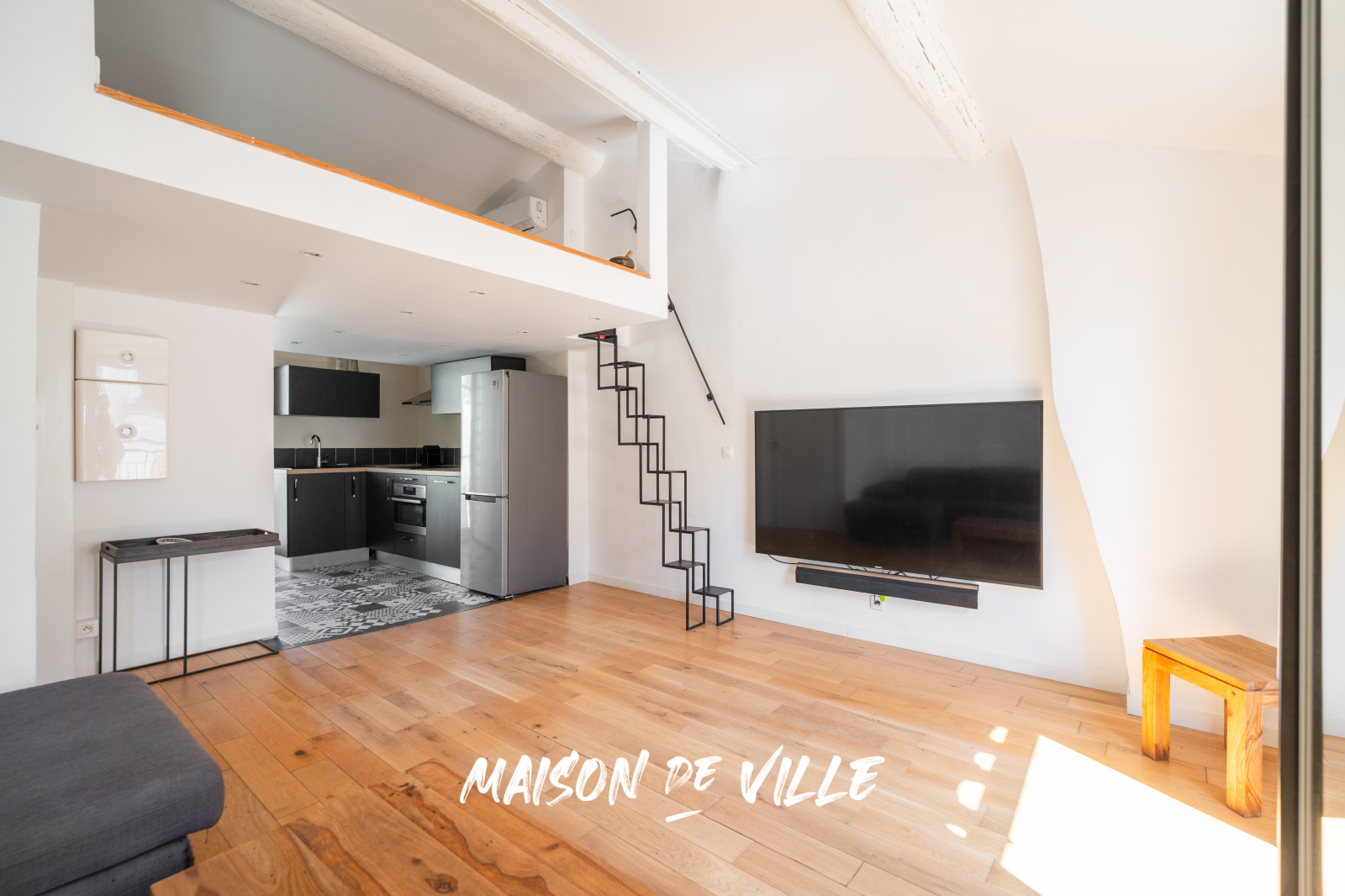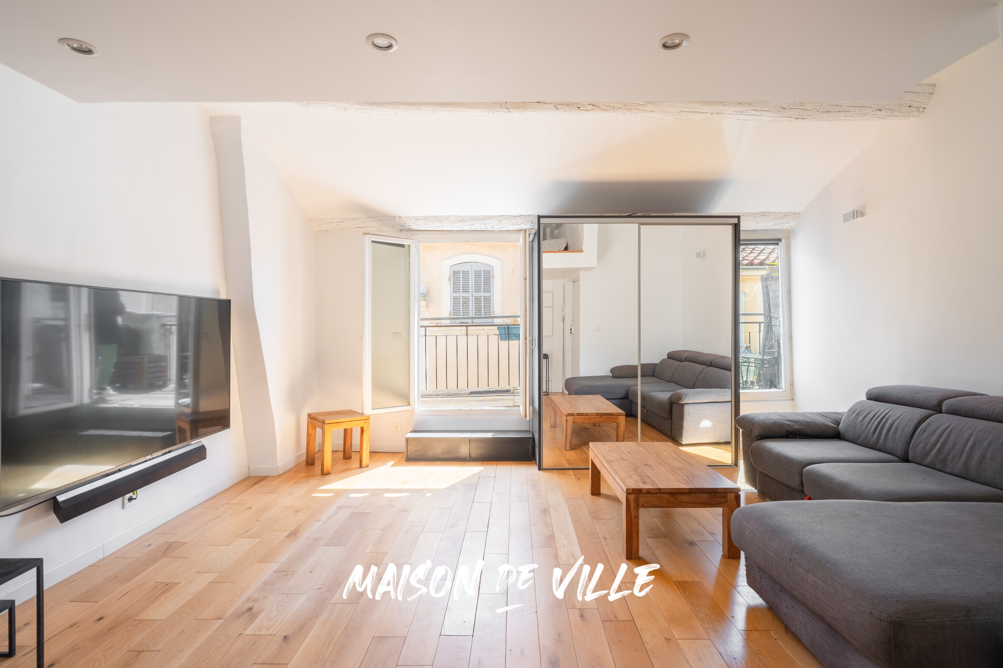 Au 4ème et dernier étage d’un immeuble marseillais ce duplex de 43,6 m² au sol (32 m² Carrez) offre un cadre de vie rare en plein centre-ville.