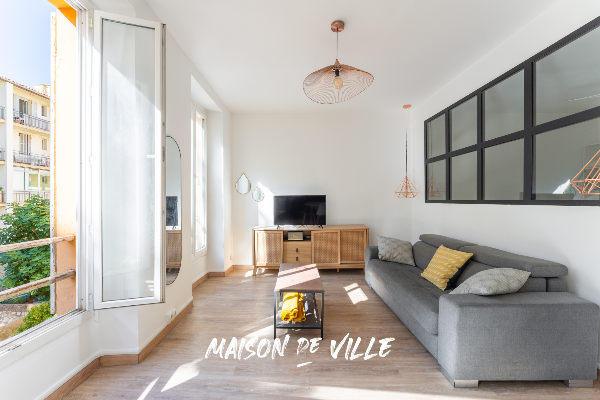 L'espace de vie cosy est ouvert sur une cuisine équipée et la chambre en second jour bénéficie de la lumière extérieure grâce à une grande verrière.