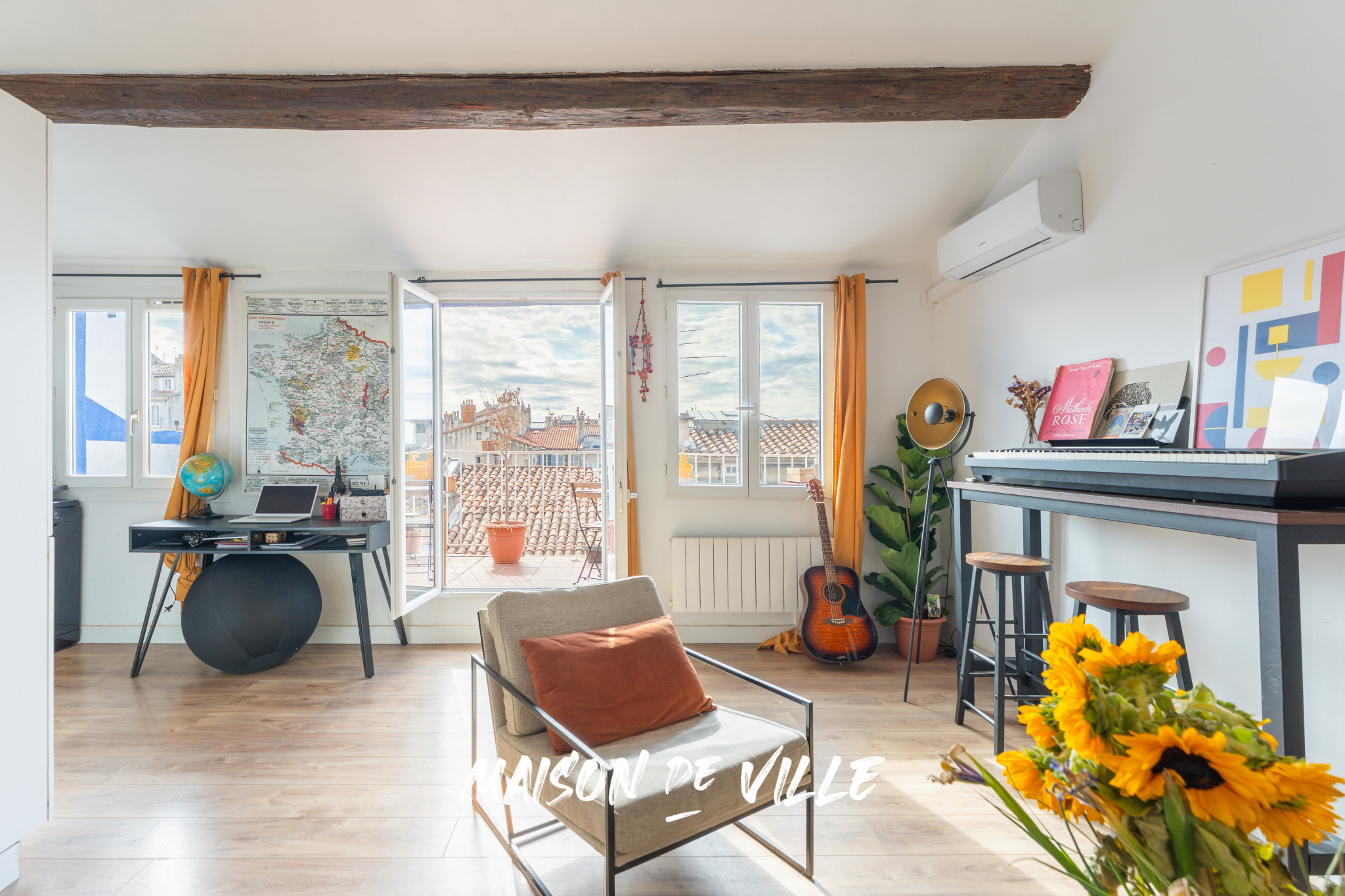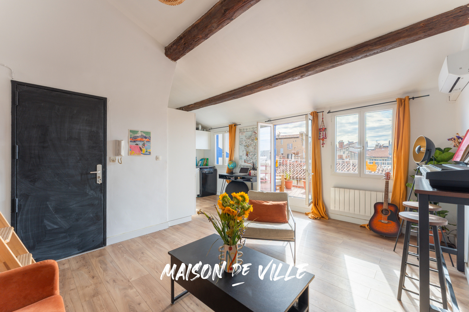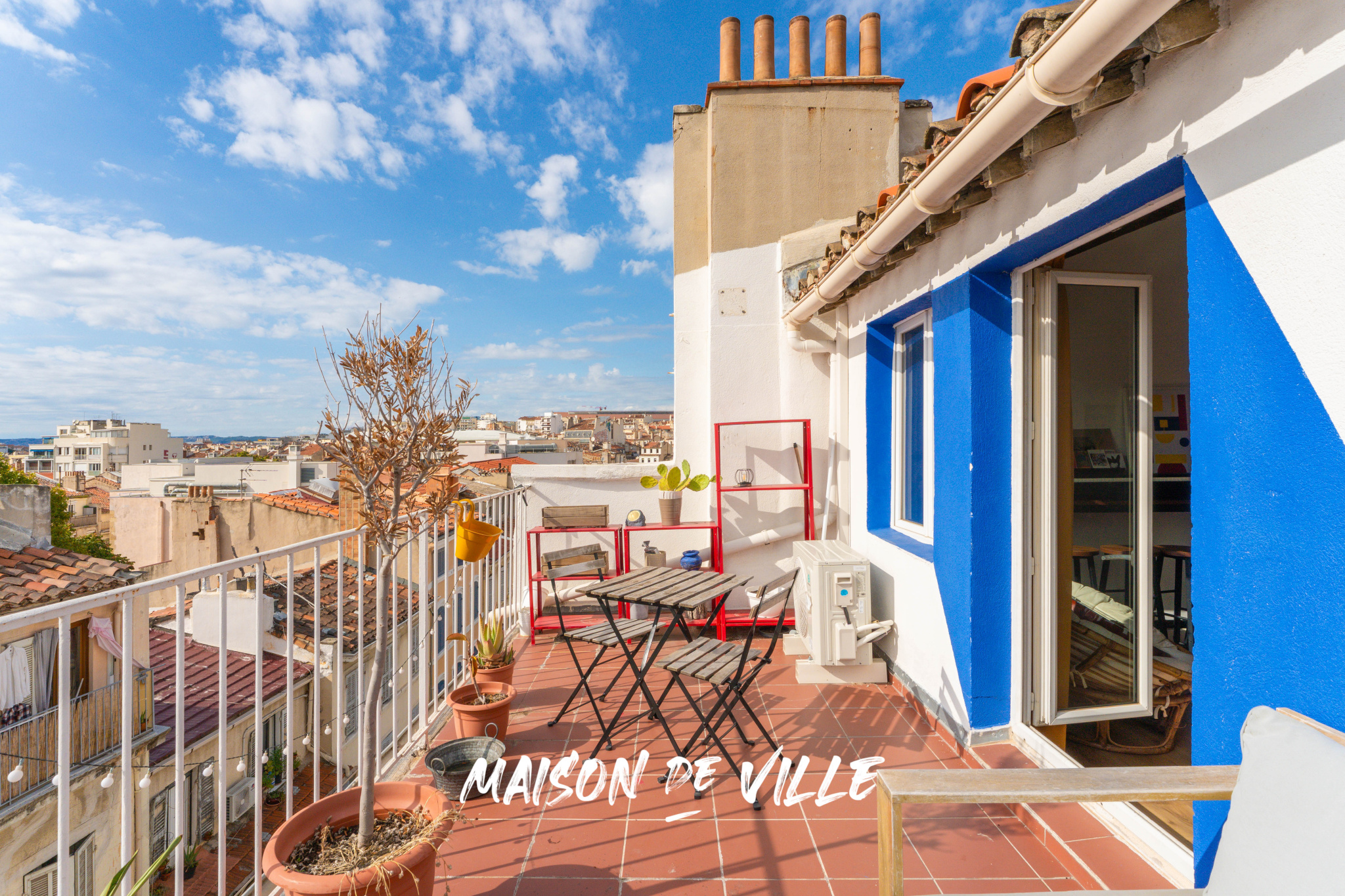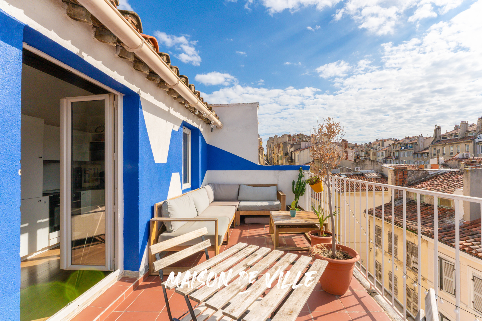 Mais le vrai coup de cœur, c’est la terrasse. Véritable prolongement du salon, elle s’étend sur 13 m² exposés sud-ouest et offre une vue dégagée sur les toits de Marseillais. Ici, on prend son café au soleil, on travaille en plein air, on partage des apéros entre amis et, surtout, on profite de couchers de soleil spectaculaires. L’Artplexe est juste en face, la gare Saint-Charles à cinq minutes à pied, et pourtant le calme est total.
