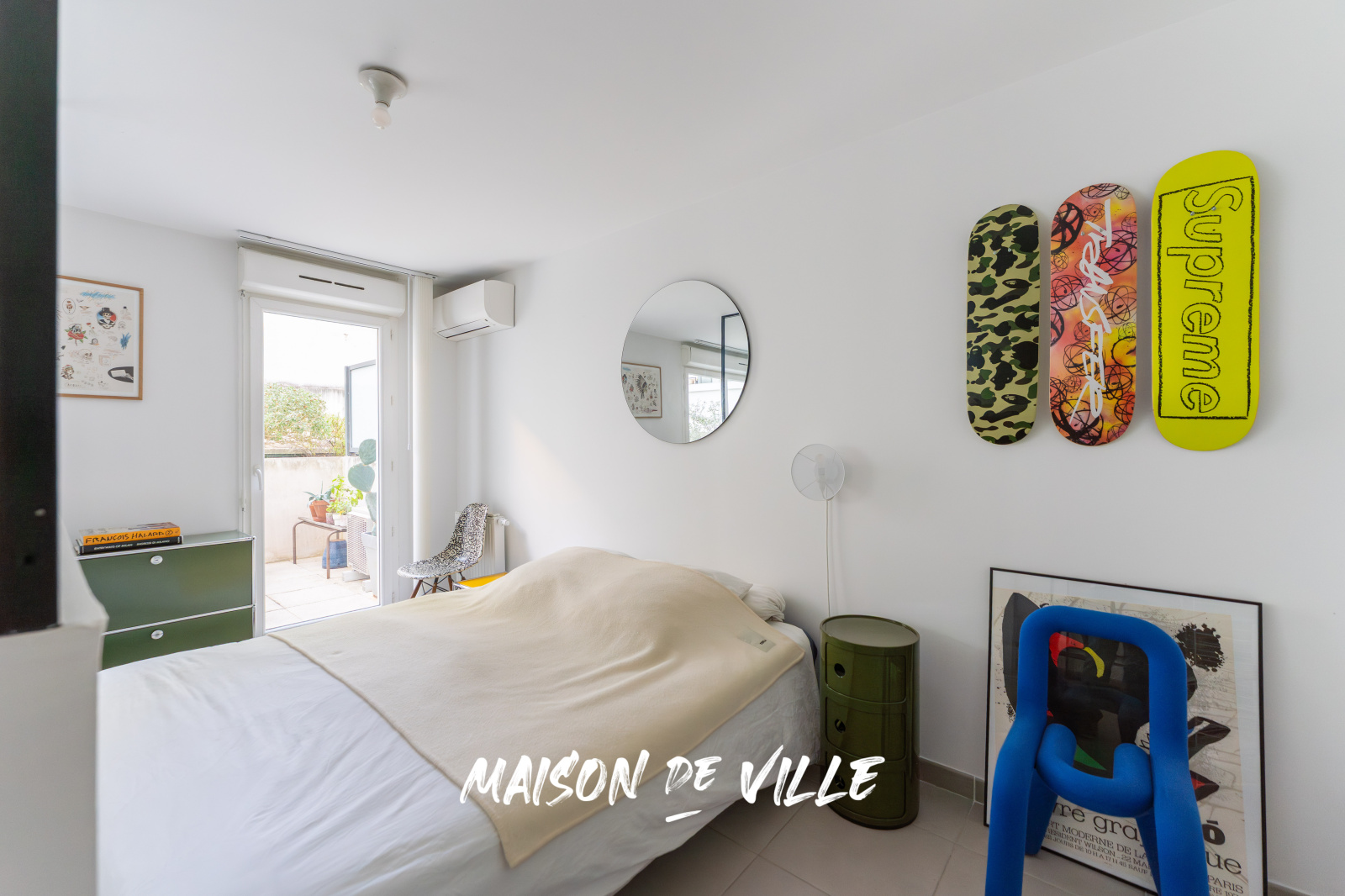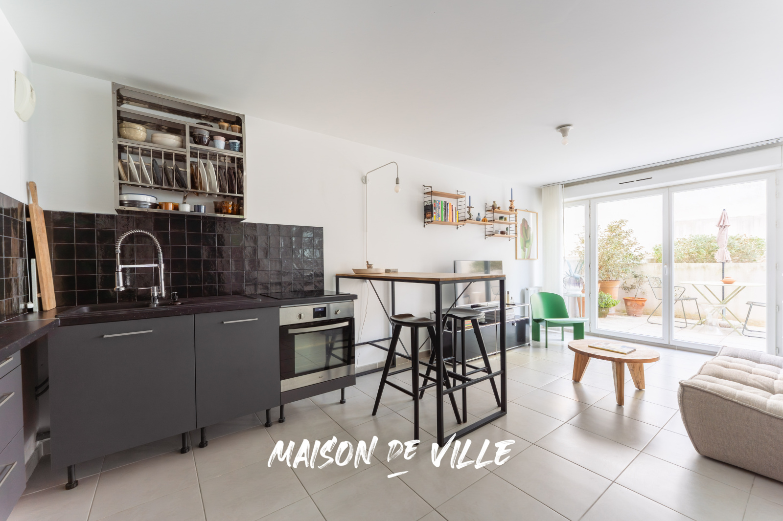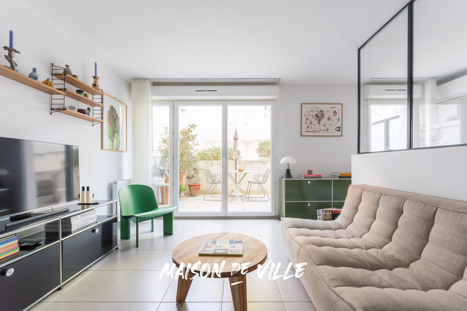 Les larges portes fenêtres ouvrent sur une terrasse au calme d'environ 14m² permettant de profiter d'une vie à l'extérieur en environnement urbain.