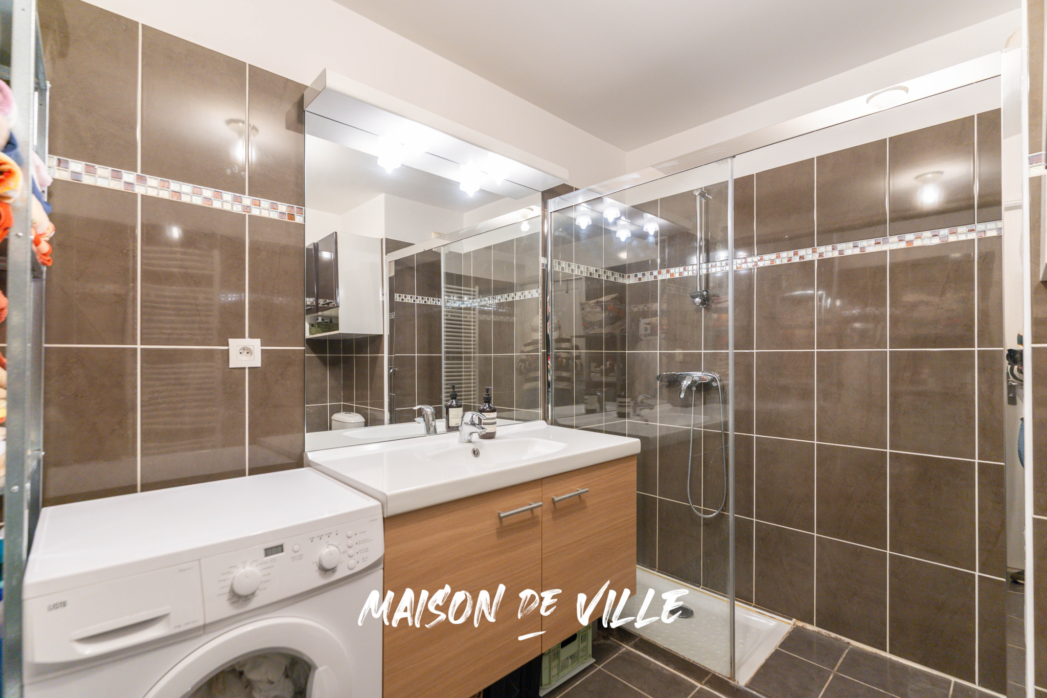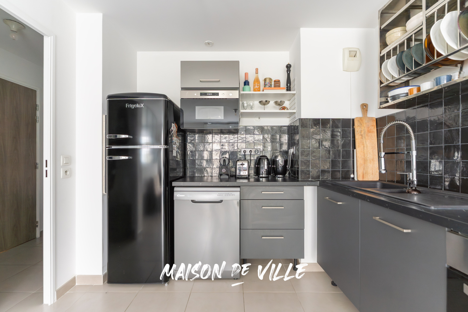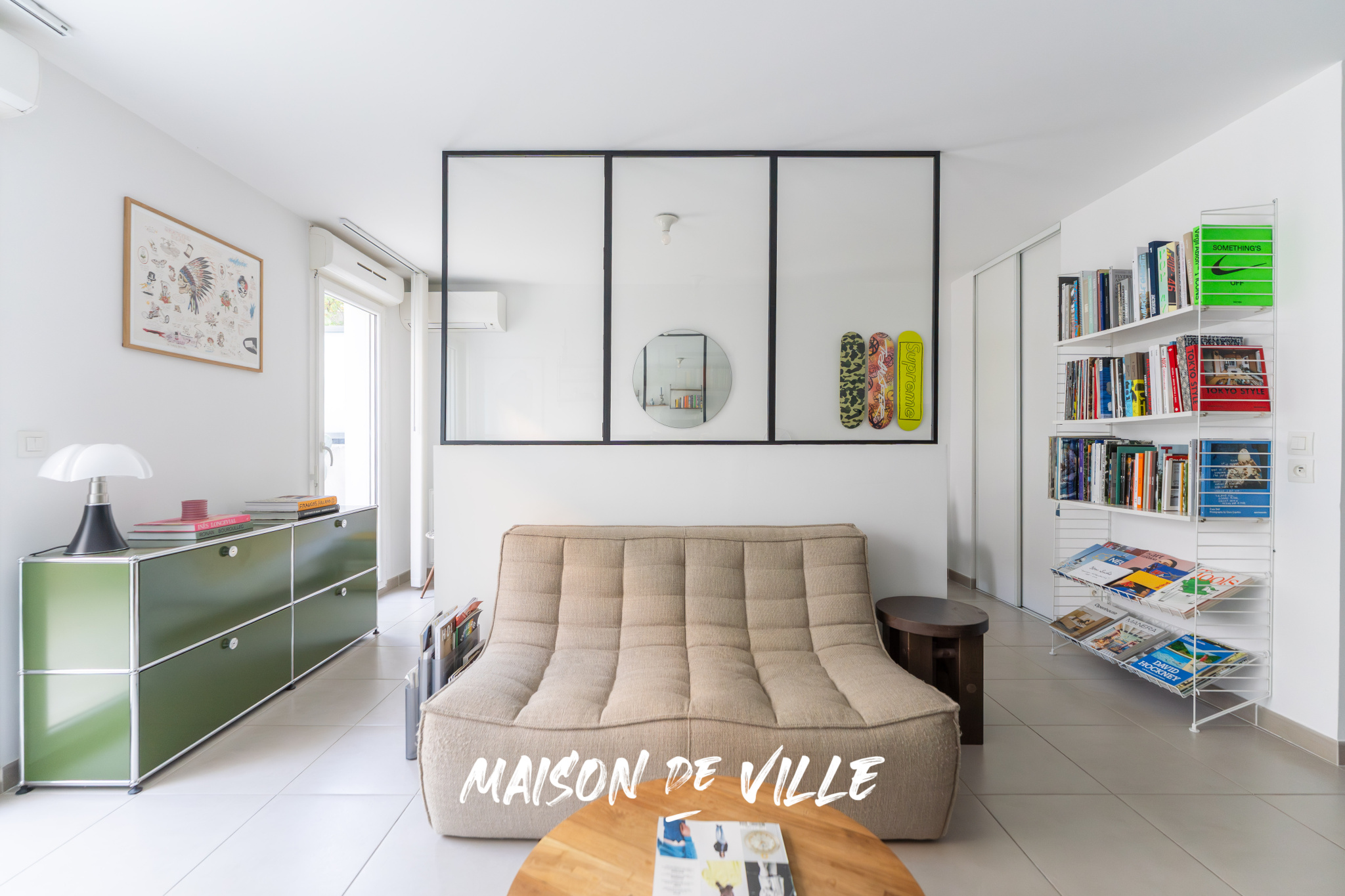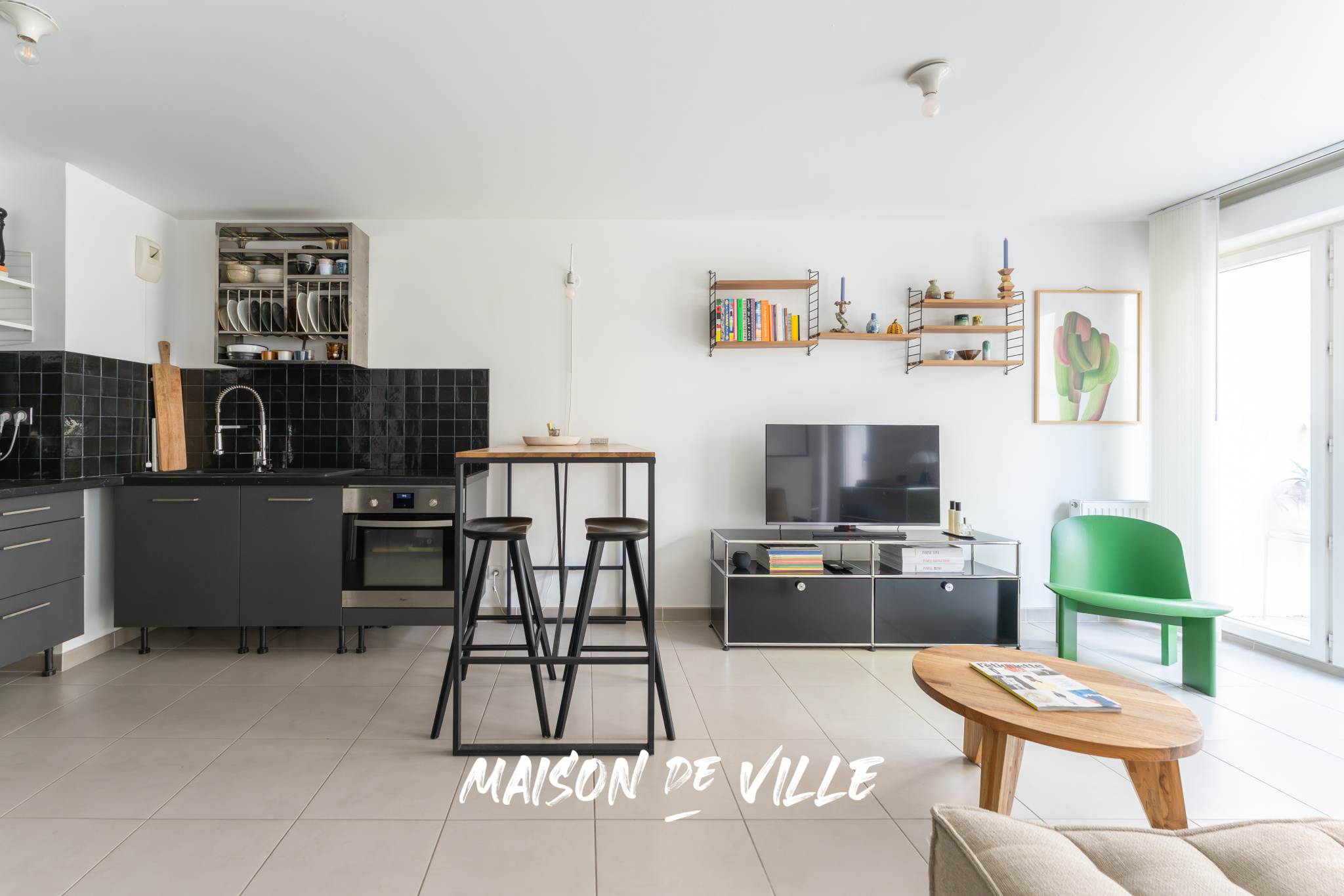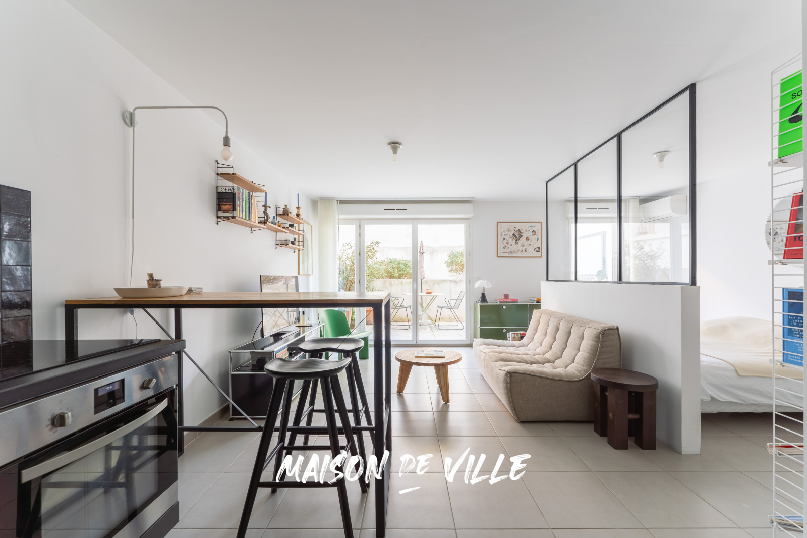 D'une surface d'environ 41m², l'espace y est optimisé et composé d'une entrée avec dressing, d'une grande salle d'eau, d'une cuisine ouverte sur le séjour et un espace nuit avec placard délimité par une verrière.