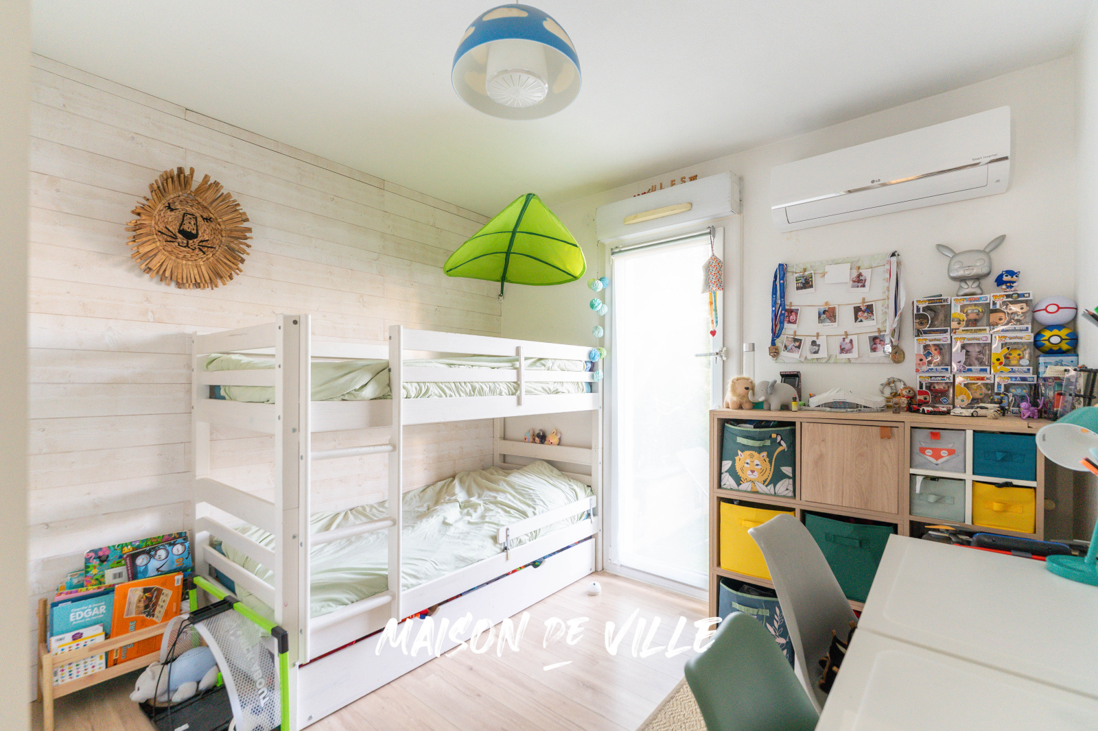 Les deux chambres donnent quant à elle sur un jardin de près de 50m² avec piscine hors sol pour de beaux moments de joie avec les enfants.