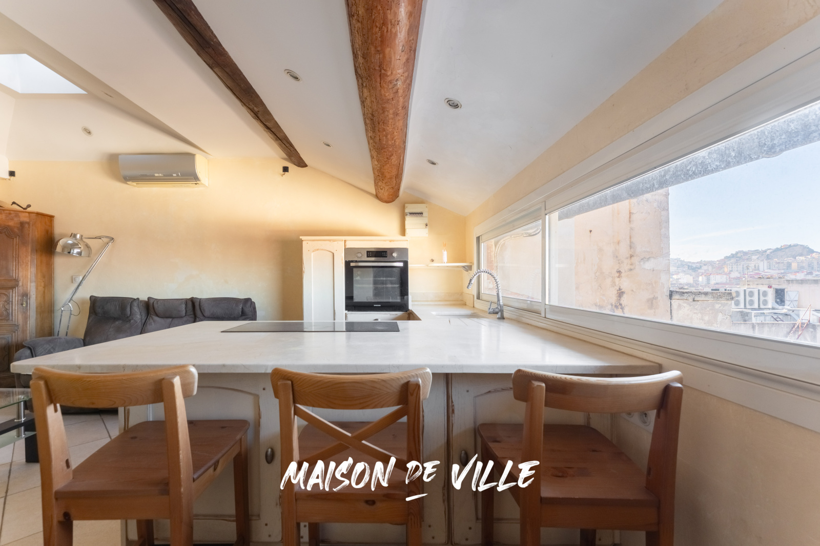 Au dernier étage d’un immeuble, cet appartement de type T2/3 propose un cadre de vie vraiment à part. Il se compose d’une belle pièce de vie lumineuse, d’une grande chambre et d’un coin bureau, idéal pour télétravailler ou créer un espace nuit d’appoint.