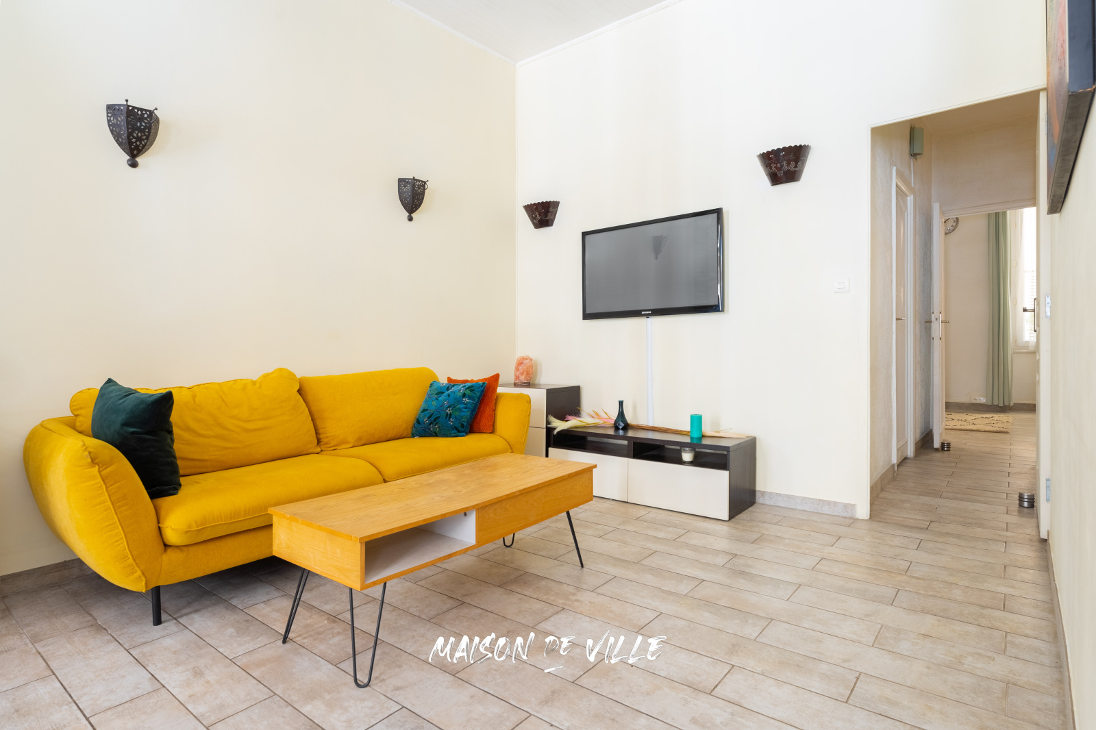 Agencé sur 71m², il est composé côté rue, d'un grand séjour lumineux avec cuisine ouverte.