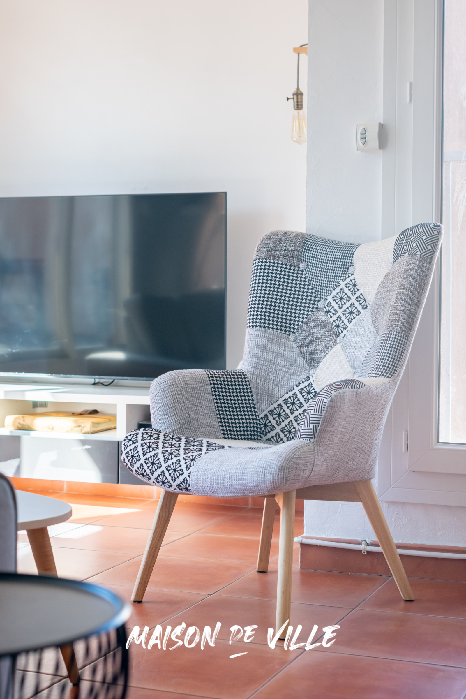 Il se compose d'un séjour, une cuisine US équipée (plaques, four, hotte, réfrigérateur), de deux chambres, d'un grand dressing, d'une salle d'eau et d'un wc séparé avec coin buanderie.