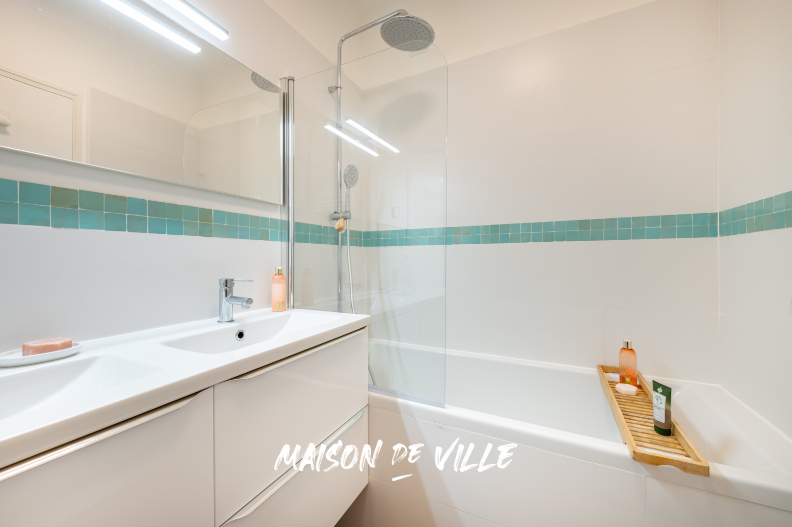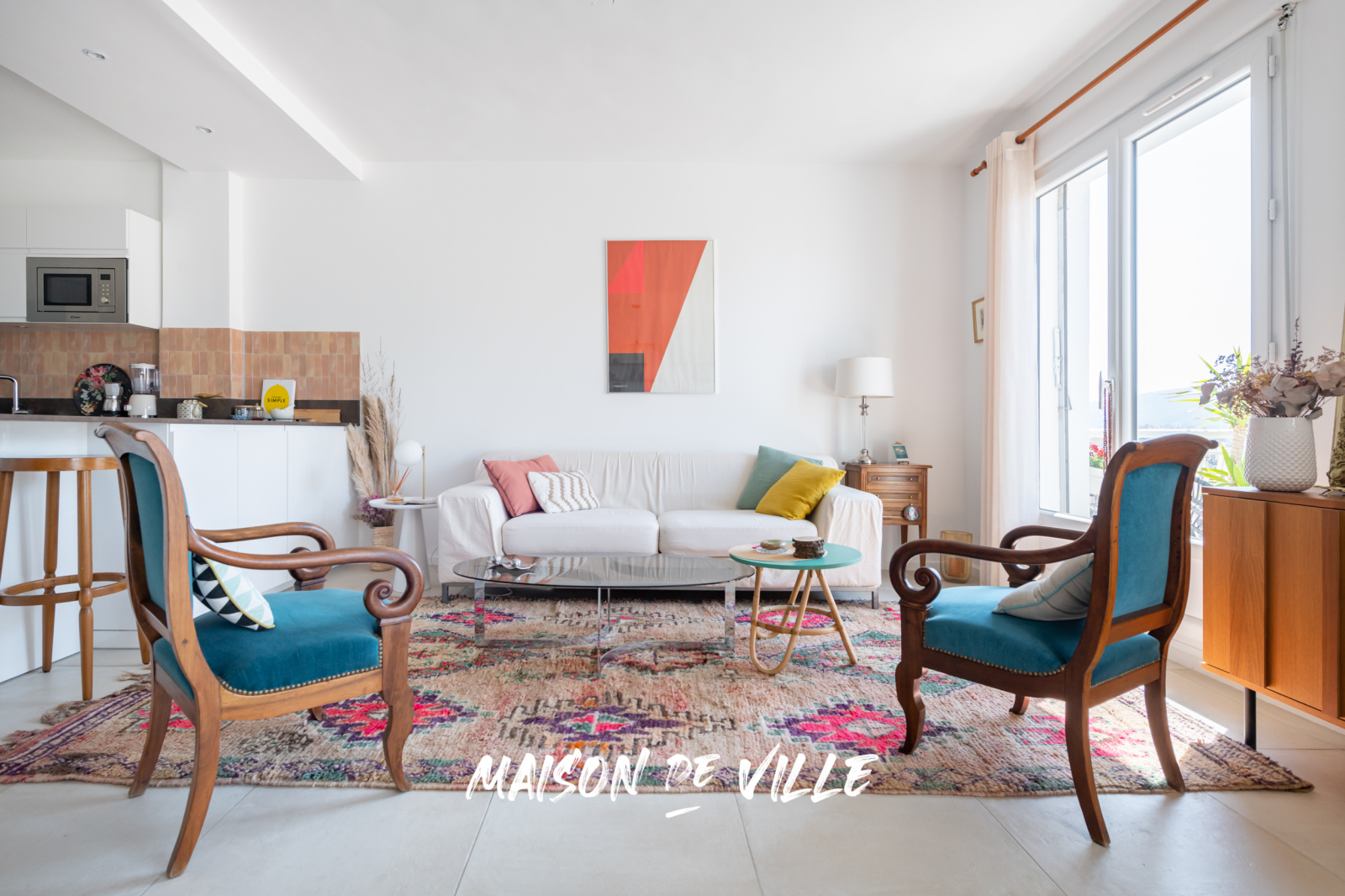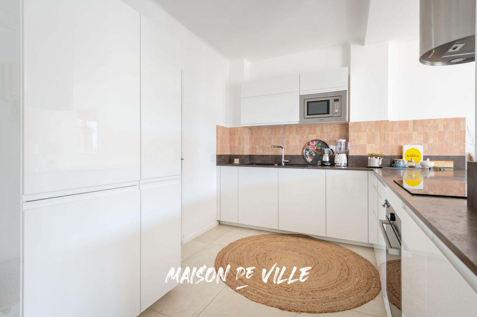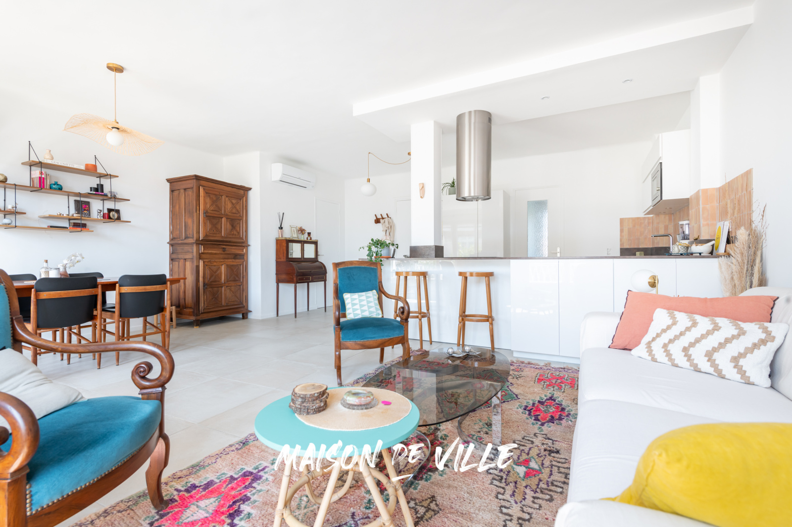 Une grande pièce de vie ultra lumineuse avec cuisine ouverte sur le salon, 3 belles chambres, une salle de bain et une salle d'eau avec wc séparé.