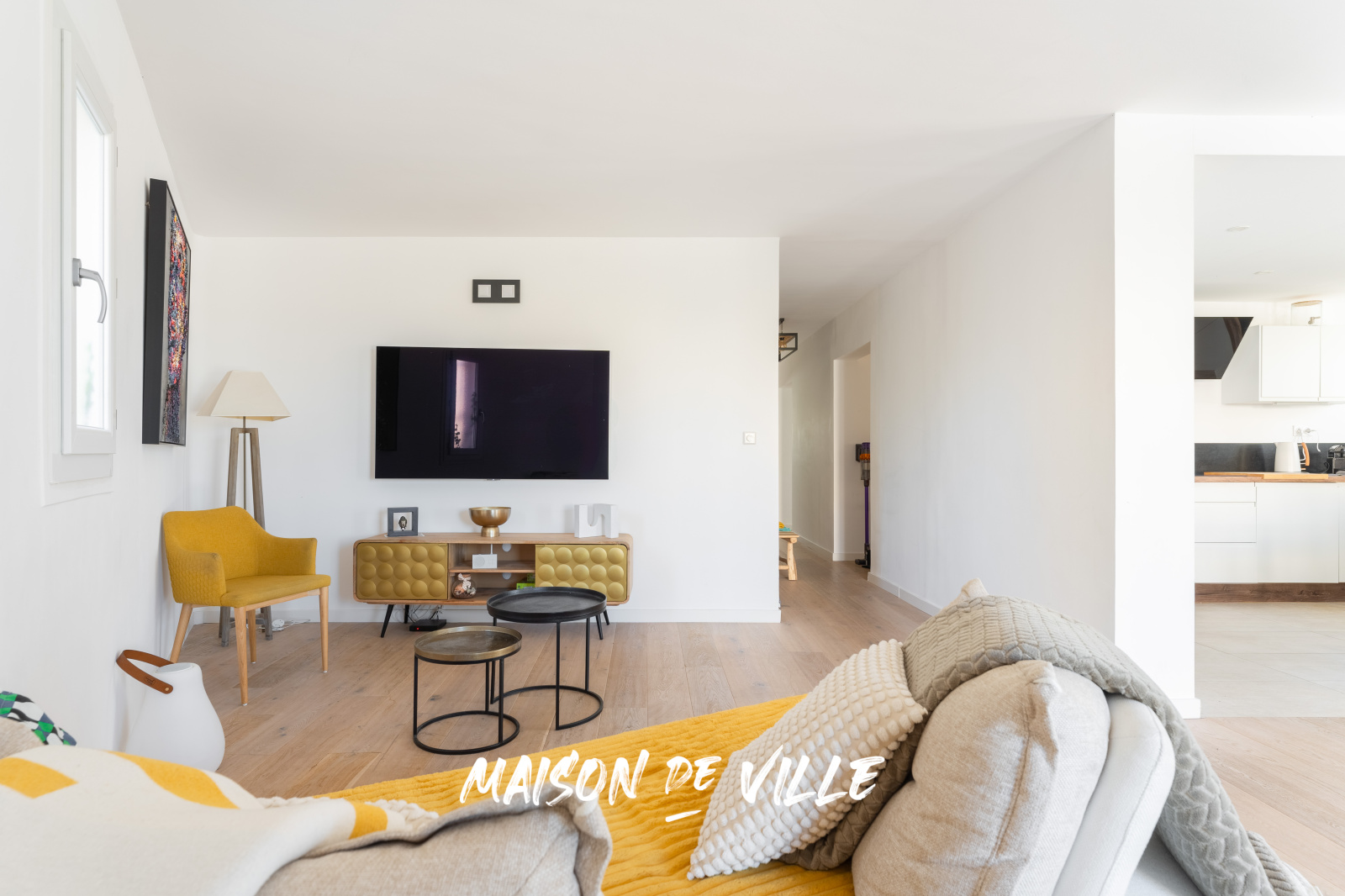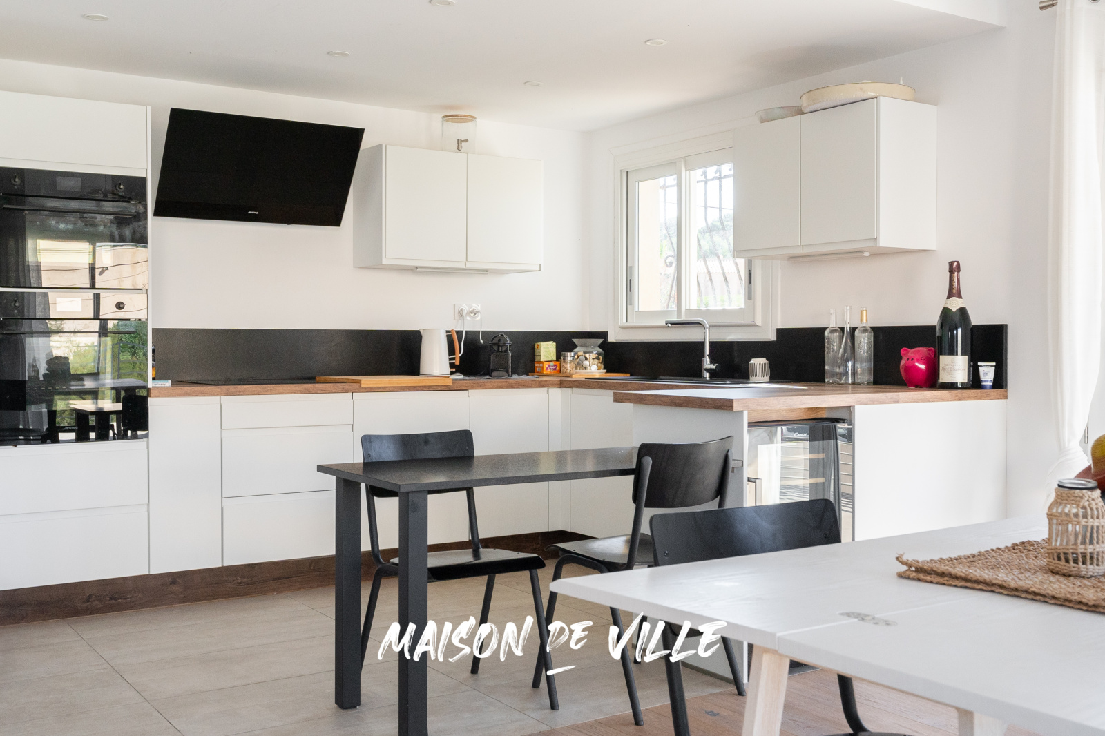 De grandes fenêtres baignent l'intérieur de lumière naturelle, créant une ambiance accueillante.